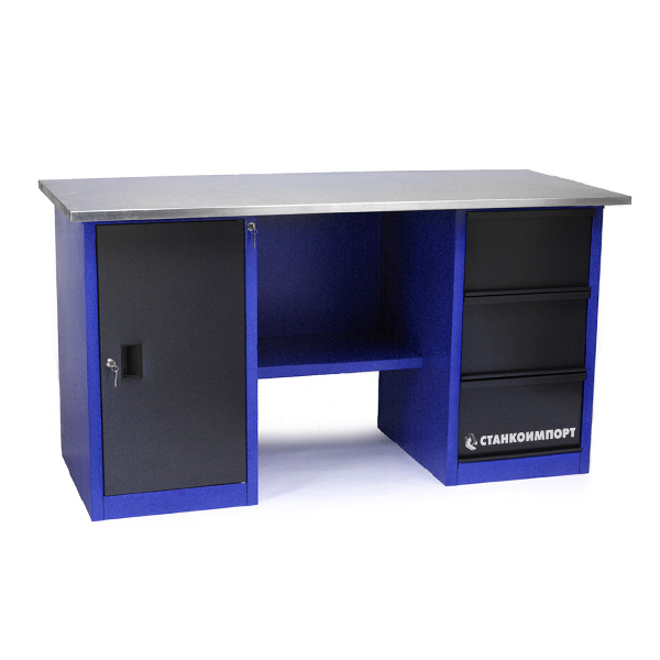 Стол для слесарных работ 1800 мм 2 тумбы (тумба с дверью, тумба с 3-мя ящиками) без экрана купить в Самаре цена ✅ - Все для СТО