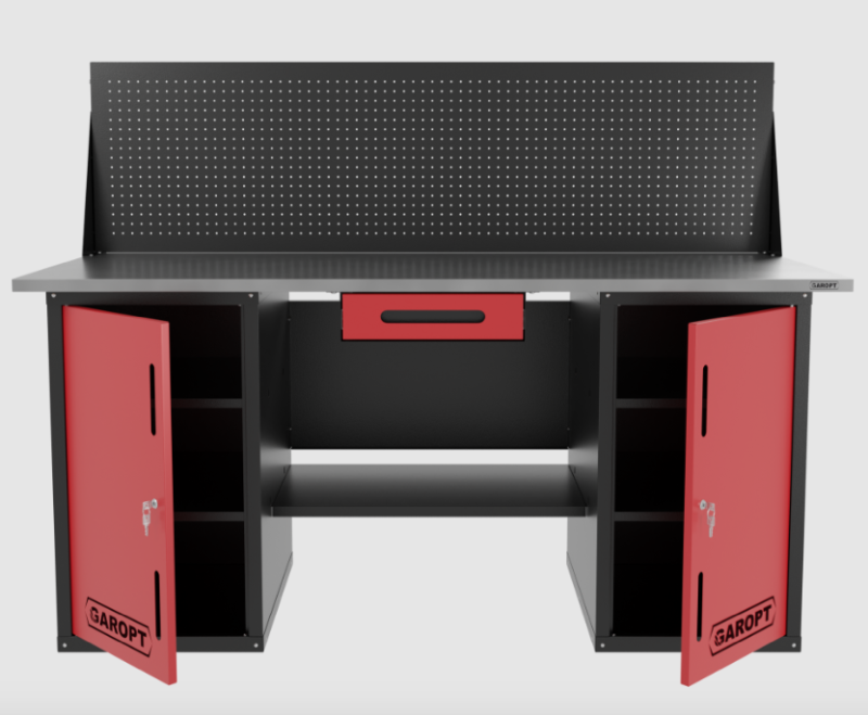 Верстак двухтумбовый с экраном и ящиком, красный 1800*700 Garopt, GT1800DDY1PP.red