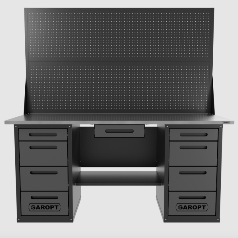 Верстак двухтумбовый 4 ящиков /4 ящиков с двумя экранами и ящиком, серый 1800*700 GAROPT, GT1800Y1Y4Y4PP2.grey