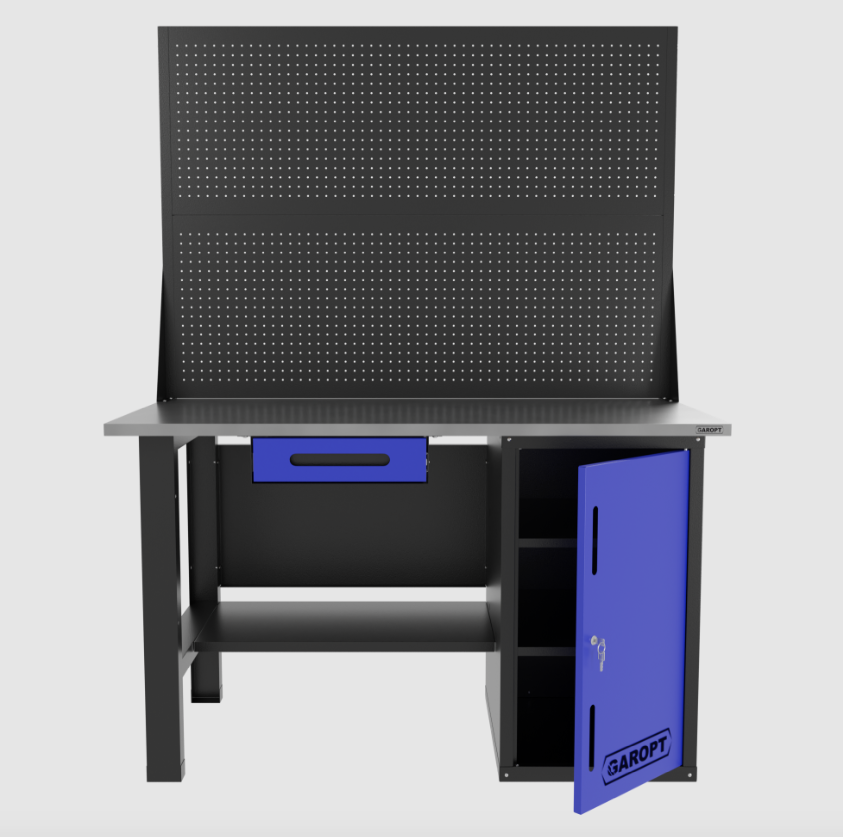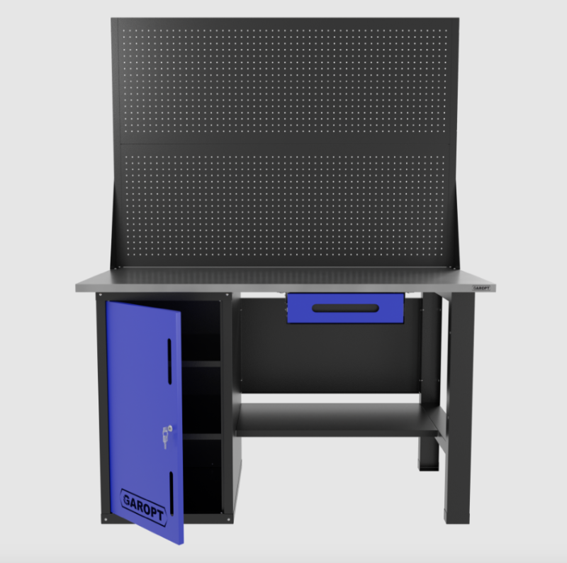 Верстак однотумбовый с ящиком и двумя экранами 1400*700 GAROPT синий, GT1400STDY1PP2.blue