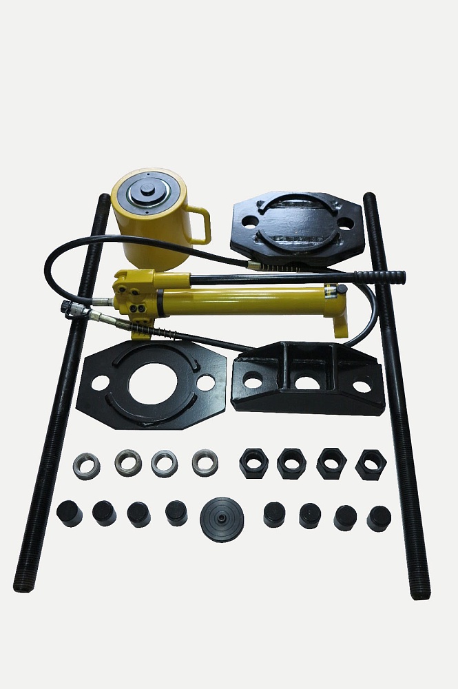 Использование данного оборудования позволяет, как выпрессовывать шкворень вышедший из строя, так и запрессовывать новый. Так же данный комплект можно использовать для выполнения любых других подобных операций, широко распространённых при ремонте, как грузовых, так и легковых автомобилей.