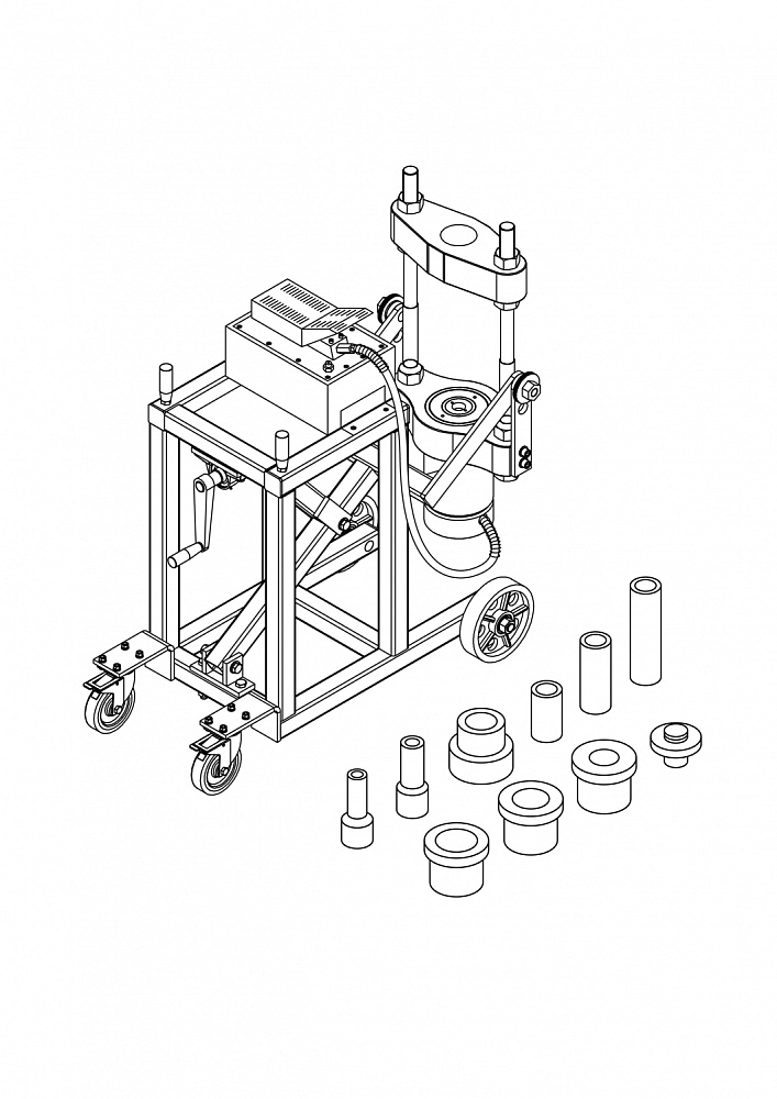 Набор адаптеров и пуансонов в комплекте — для универсального применения на разных типах шкворней;